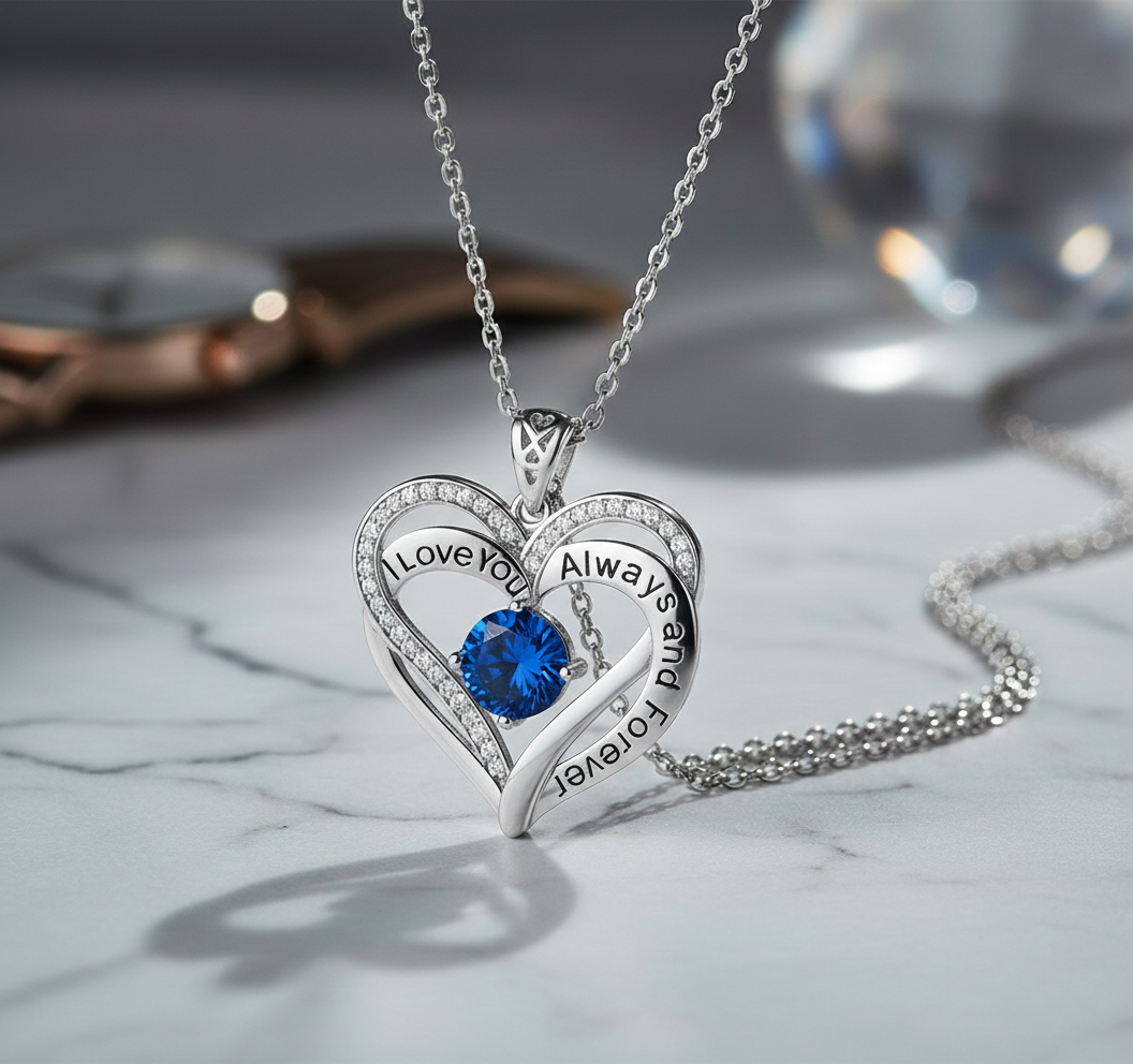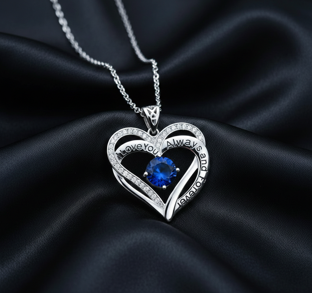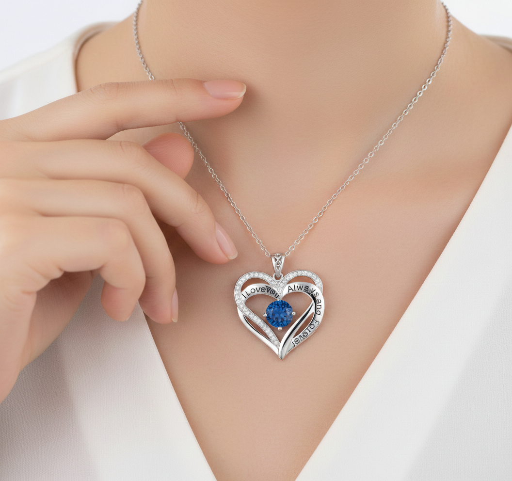 Heartfelt Design: The pendant features a stunning double-heart silhouette intricately engraved with "I Love You Always and Forever".