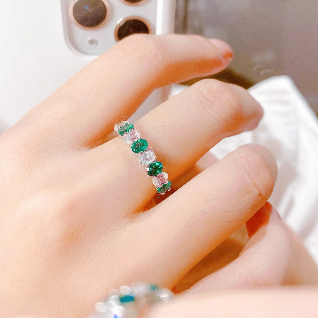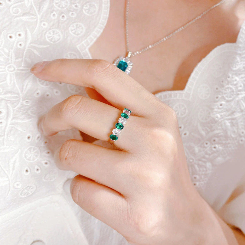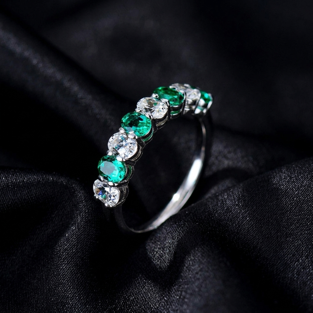 Artisan Craftsmanship: Features seven manually prong-set stones, including alternating lab-created emeralds and 5A cubic zirconia, ensuring maximum brilliance and a secure fit.