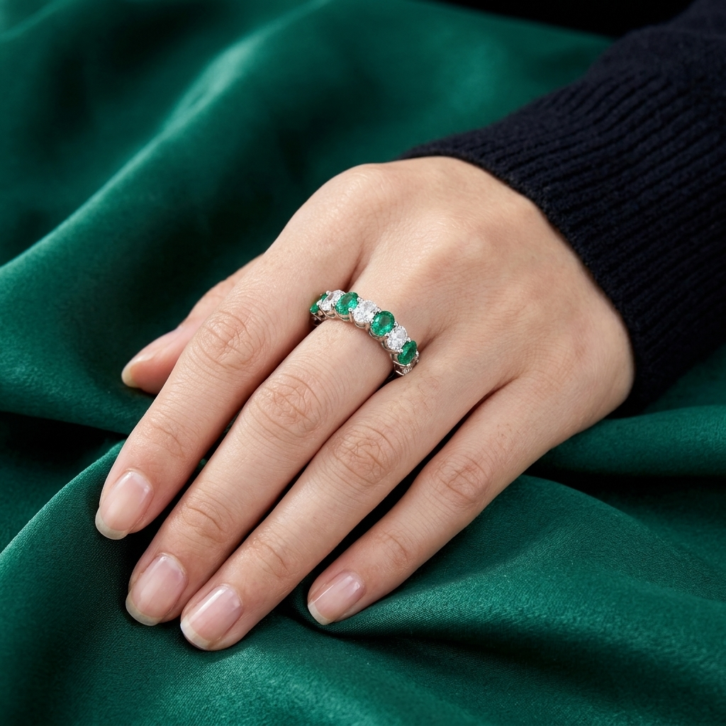 The Regal Garland | Sterling Silver Emerald Eternity Band
