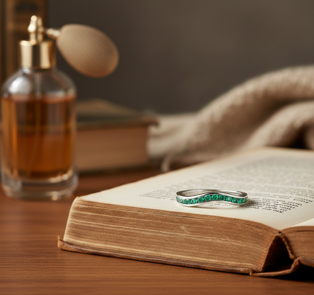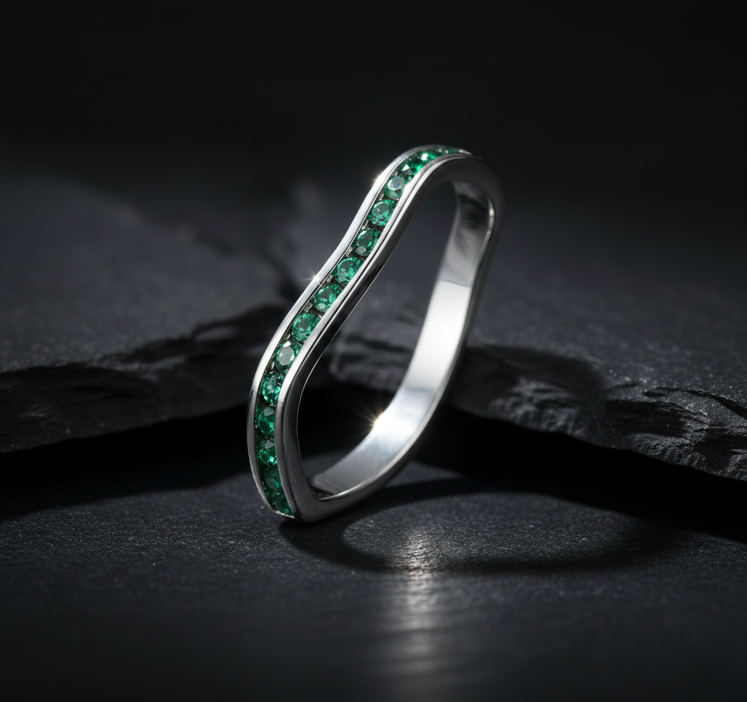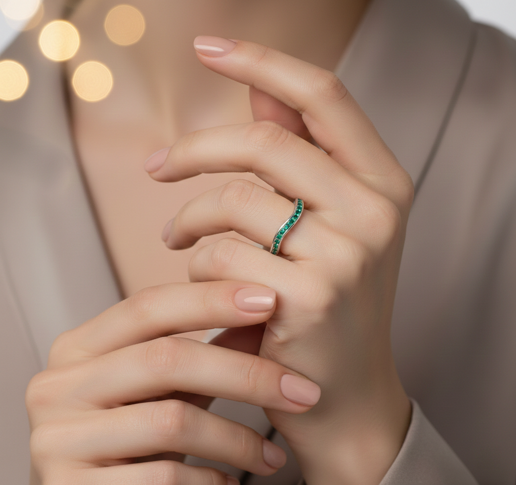 The Verdant River Wave | Emerald Birthstone Eternity Ring
